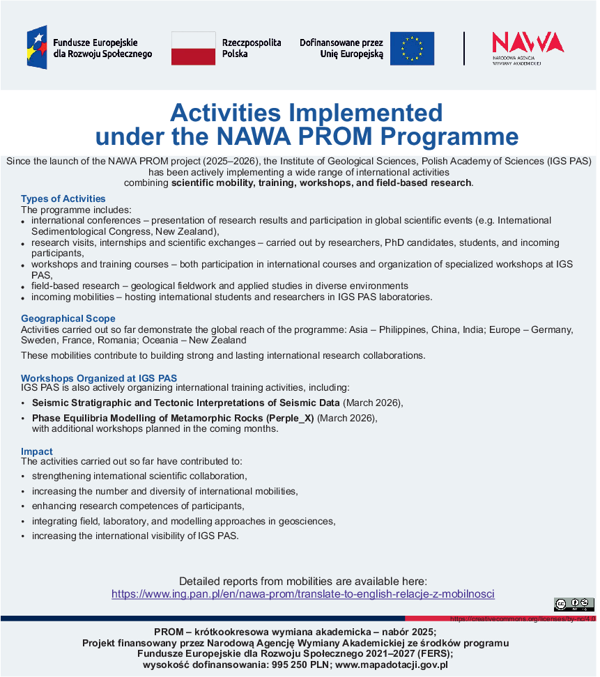 History of our institute reaches 1956. We conduct basic geological investigations concerning the origin and formation of rocks and minerals, evolution of selected orogens and reconstruction of ancient environments. Disciplinary areas of research interests include sedimentology, Quaternary geology, isotope geochemistry (especially geochronology), mineralogy, petrology, tectonics, stratigraphy and hydrogeology, also paleontology .