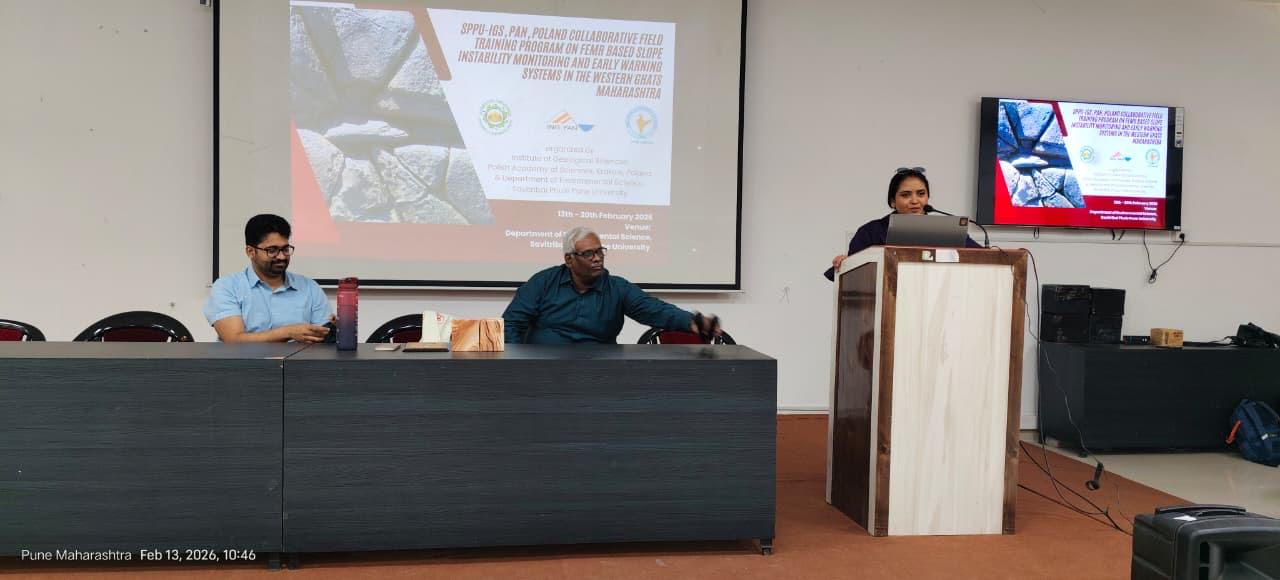 Szkolenia i dydaktyka: W ramach wizyty przeprowadzono cykl wykładów i warsztatów dla studentów studiów magisterskich na Savitribai Phule Pune University (SPPU), obejmujących monitoring osuwisk i systemy wczesnego ostrzegania.